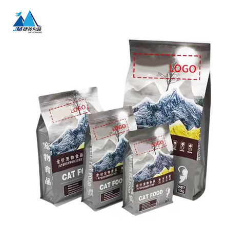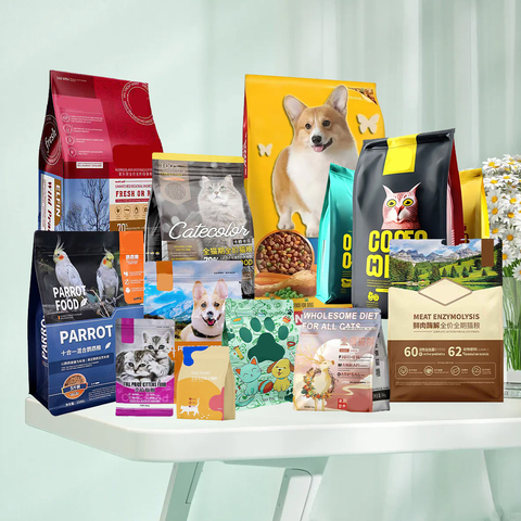 Logo personalizzato fondo piatto Stand up sacchetto di plastica per animali domestici sacchetto di tenuta per vari alimenti per il confezionamento di cereali e acqua