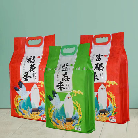 工場価格カスタムプリントアルミ箔スタンドアップドライ食品包装ジッパー平底米袋2kg 5kg 10kg